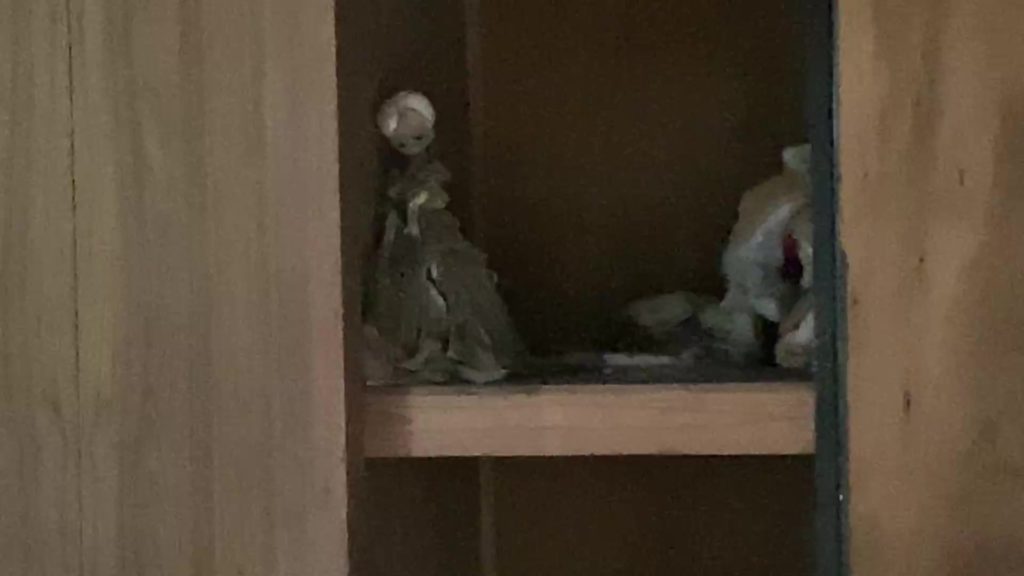 押し入れには左手が逆方向に曲がってしまった人形が。