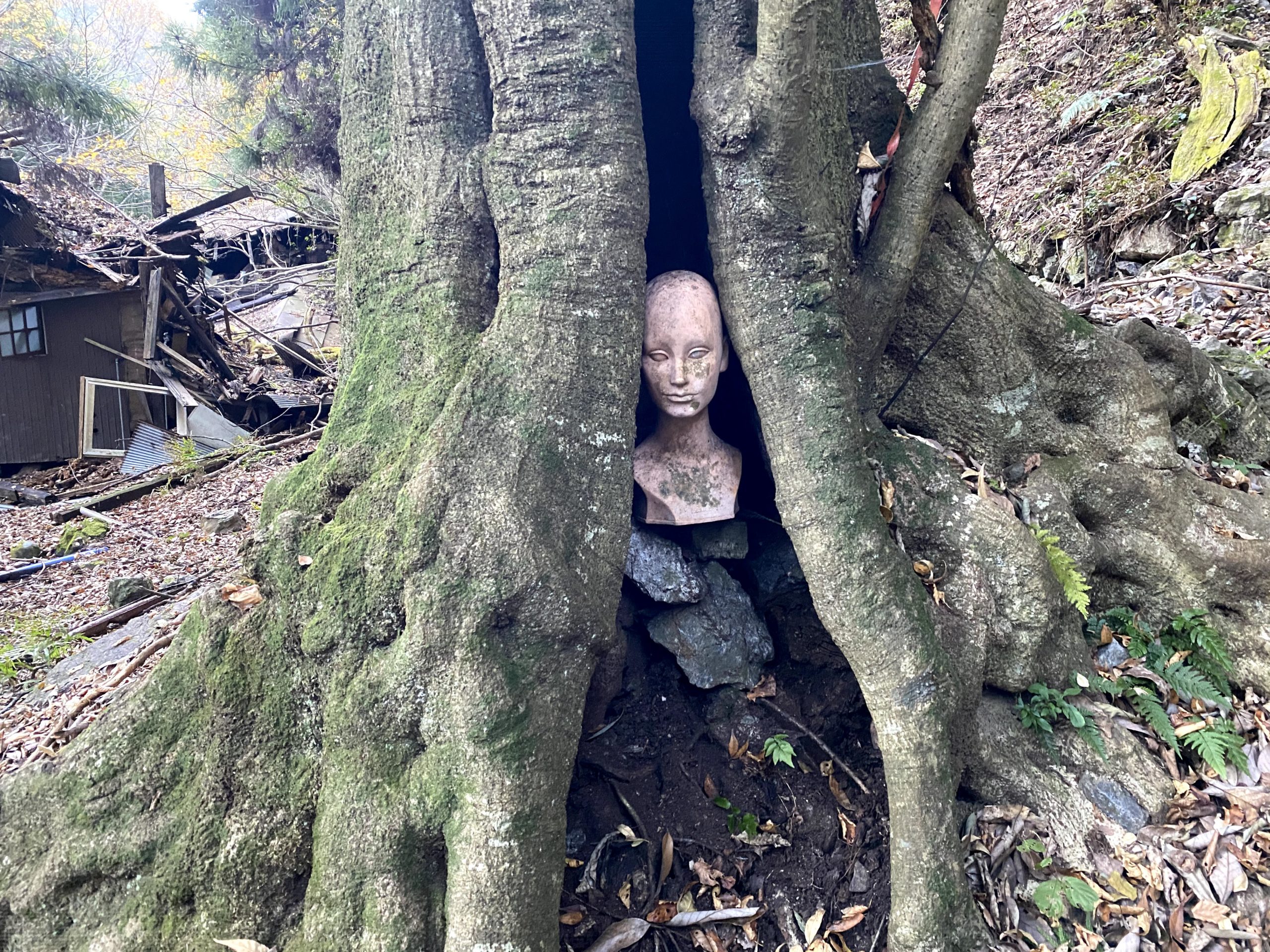 最後は木と一体化したマネキンが見送ってくれました。